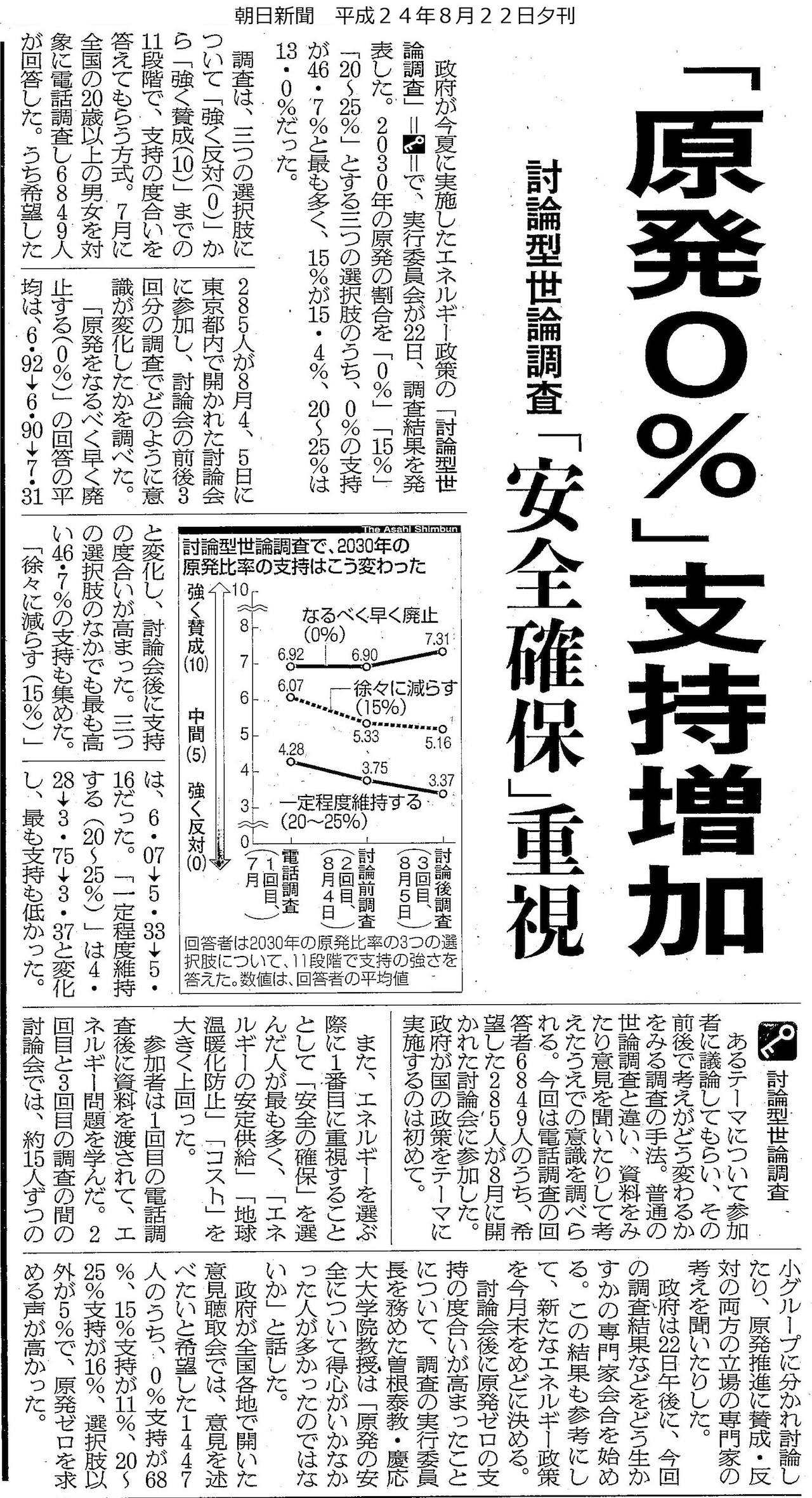 『原発比率 揺れる意見 「討論型世論調査」終了 政府、月内にも新エネ戦略』